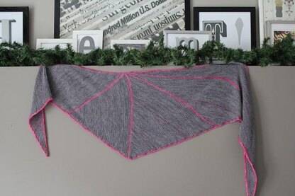 This shawl is worked in garter stitch, followed by sets of short rows and stripes emphasize these parts. This method of construction creates the asymmetrical shape and the I-cord border gives a nice finished touch.