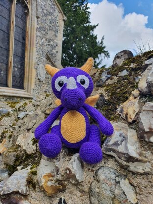 Alby is a cute and loveable baby dragon who just wants to be your friend. The finished product measures approximately 19cm tall sitting and 24cm tall standing when worked with the yarn under technique.