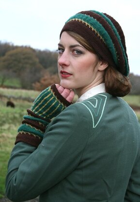 Alconleigh is a stylish ensemble of hat and gauntlets heavily influenced by 1920s design. Knitted in [Susan Crawford's Fenella yarn, the pattern provides the instructions for both hat and gauntlets across a range of sizes