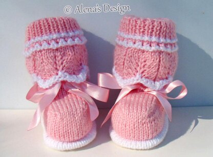 The pattern is written for a size 0-6, 6-9 and 9-12 months, but all sizes have a lot of stretch, and easily fit much longer than normal. Includes PATTERN for the Alex Baby Booties in three sizes: