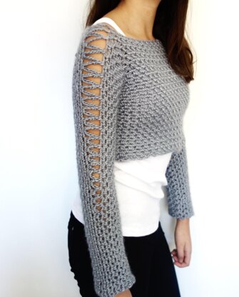 This chunky cropped sweater is a quick and easy project. The simple textured pattern is enhanced with elongated stitches on shoulders creating a sexy modern look. Crochet this for yourself or as a gift for your loved ones! Unique designs for unique women!