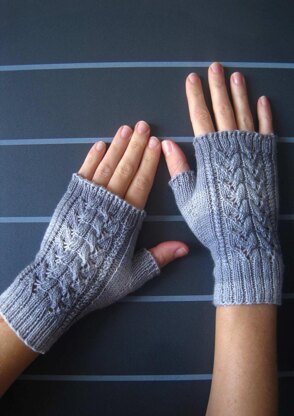 Warm, practical, stylish and most importantly - fun to knit! These pretty fingerless mitts feature a cable and eyelet pattern.