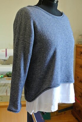 Ali, my eldest, asked me to make her a not too boxy jumper which slid off her shoulders and had a curved front which touched just below the waist, shorter than the back, bracelet length sleeves. This is the result.