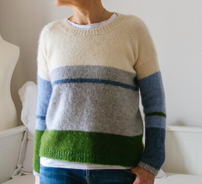 ‘All Five ‘ is worked seamlessly from the top down. It starts with the back and shaping the shoulders with short rows, then the back is worked to the underarms. The front stitches are picked up from the cast-on edges of the back, the shoulders are also shaped with short rows, then joined together and worked to the underarms. Then front and back are joined and worked in one piece to the hem. The sleeves are picked up from the armholes and worked in the round to the cuff.