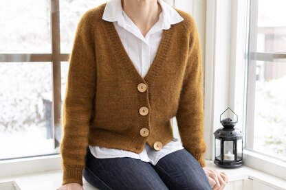 This is a simple basic cardigan that always fills a need in your wardrobe. It has casual sizing and regular fit. The cardigan is worked seamlessly from the top down, with a raglan yoke and sleeve shaping. The body length of the cardigan can be easily modified, if preferred.