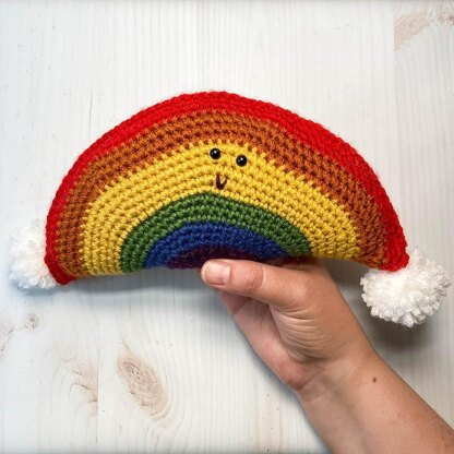 This simple and cheerful smiling softie has pom pom clouds at the end of its rainbow.