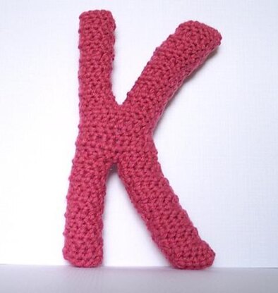 This letter K is approximately 8.5 inches tall and 5 inches wide. This item is crocheted and then stuffed with polyfill stuffing.
