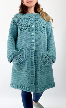 The crochet cardigan looks elegant; it has a distinctive, attractive, eye-catching yoke design with complimentary packets and a border pattern to complete the look. The pattern included step-by-step crochet instructions (UK and US terms). The diagrams are marked in different colours – each coloured row- represents a new row - for easy reading. Size from S to 3XL This work includes crocheting individual pieces and joining them together. Additionally, a video tutorial is also available. Materials: Valley Yarns - 100% Extrafine Superwash Merino Wool (50g -89m/97yds) medium weight – group 4. S/M- 1200 g, L/XL-1300 g, 2XL/3XL-1400 g.