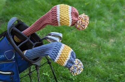 These golf club covers are worked from the bottom up. The shaft portion is worked back and forth in rows, then joined. The club head is worked in turned rounds in the alpine stitch for amazing texture. A big pom pom completes the design!