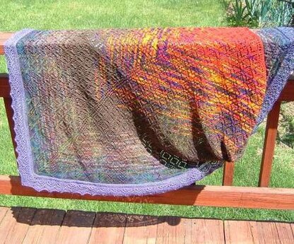 This pattern is a lovely triangular shawl that is started at the top center back and increased 4 stitches every other row thru the main body to make two isosceles triangles. The body stitches are then cast off as a lace edging is created along the bottom edge.