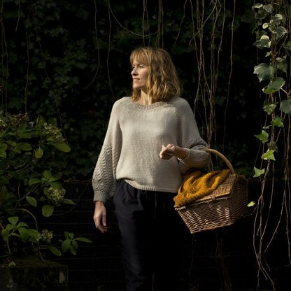 Pretty textures meet voluptuous drape with the Amber Wheat Sweater. The contrasting elements complement the elegant properties of Kettle Yarn Co.'s Northiam DK yarn, which has gorgeous stitch definition and a sumptuous feel. Ease and detail combine to create a comfortable sweater with style.