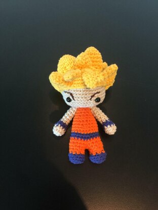This pattern is for an amigurumi Super Saiyan Doll. It is worked using DK cotton yarn and a 2.5mm hook. It is written in US terms. It can be made smaller by using a smaller gauge needle.