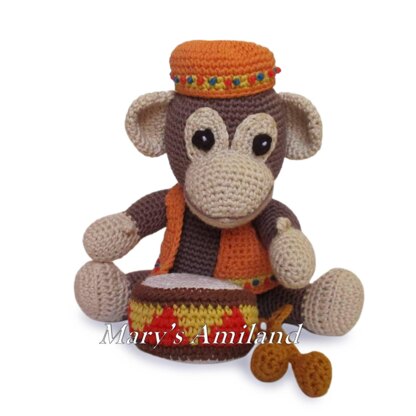The gilet and hat are removable, the pattern includes instructions for making the clothes with the same hook/yarn of the monkey. Should you decide to go for different yarn weight you may have to adjust the size as needed. Finished Size: if done with cotton fingering-weight yarn (4 ply) in the selected colours for all items, 3mm hook, it is 21cm (8.19”) tall in standing position w/o hat and ears. This may vary depending on the yarn and hook size you decide to use.