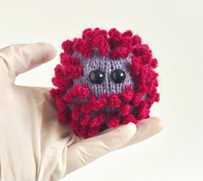 The Amigurumi Coronavirus knitting pattern gives you clear step by step instructions and it only involves knitting flat. This pattern is suitable for a confident beginner/intermediate knitter and the finished virus is about 3 inches (7.5cm) in diameter.