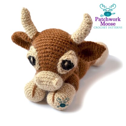 This is Clementine, a sweet little Aubrac cow looking for adventure! Clementine measures about 8 inches sitting in a DK yarn, but she can be made from any weight yarn and appropriate hook for different sizes. The pattern contains instructions for both a jointed cow and a cow with fixed arms and legs. It is an easy pattern to follow with plenty of diagrams and you will always be welcome to contact me for any extra help.This pattern is in US Terminology.