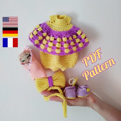 Amigurumi doll clothes pattern for Amelie, Crochet doll outfit pattern 9.84 inches (25 cm) (English, Deutsch, Français)