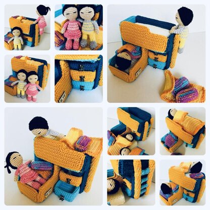 Hello our friends and amigurumi lovers around the world, we designed a fully crocheted double bed /drawer closet for two brothers (sister - brother), with fully details (beds, mattresses, bed covers, pillows, colored drawers and two dolls with 3.4” height). It is an amazing with suitable scale 1:20 that is means that each 1 m in real equal 5 cm in this pattern, such a beautiful soft crochet double bed will be an amazing gift for a little kid in different occasions. This pattern is written and designed by Reham Youssef the owner of R.Y amigurumi and please note that it is for your personal used only and it is not allowed to sharing and reselling in Internet,