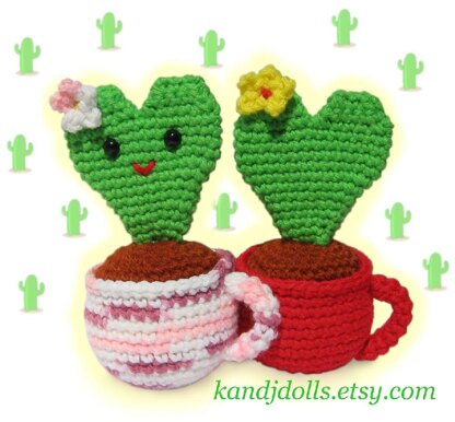 This crochet pattern is written in English with U.S. crochet terms. It is 4 pages long with very detailed instructions and 14 images to help you make the Heart Cactus.