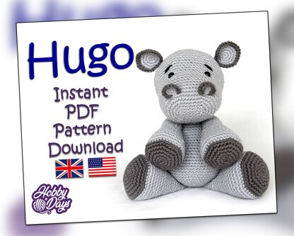 2.5mm Crochet Hook 2-50g Paintbox Yarn, Cotton DK-Stormy Grey (405) 1-50g Paintbox Yarn, Cotton DK-Slate Grey (406) Finished size approx. 10.5” (27cm) This item can be made in any yarn weight, but the size of the finished item may differ. Polyester stuffing 8mm Safety eyes Tapestry thread or Black yarn Stitch marker Pins Darning needle Scissors