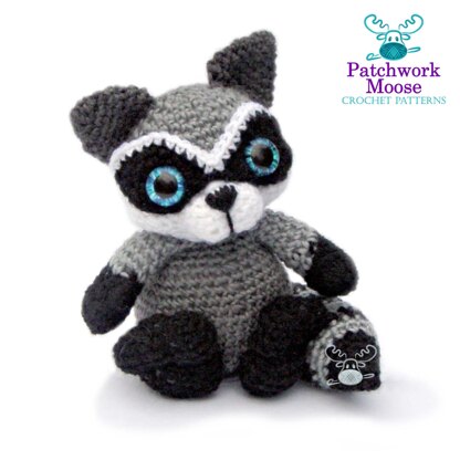 This is Zebedee, this sweet little raccoon is always getting into mischief! Zebedee measures about 6 inches in a DK yarn, but he can be made from any weight yarn and appropriate hook for different sizes. It is an easy pattern to follow with plenty of diagrams and you will always be welcome to contact me for any extra help. The instructions for this pattern are written in UK terms but if you are used to American terms, don’t worry, the differences are all explained in the pattern.