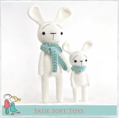 With this pattern you can crochet two lovely bunnies, one big and one small. Plus the lovely scarves they are wearing.