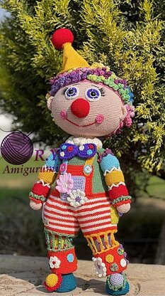 Hello our friends and amigurumi lovers around the world, we are happy to share with you our new creation our lovely colorful clown with height 50 cm (20’’) , such a beautiful soft crochet clown will be an amazing gift for a little kid in different occasions (Christmas – birthday - ……………..) .This pattern is wonderful because we used a recycled material for the first time in it This pattern is written and designed by Reham Youssef the owner of R.Y amigurumi and please note that it is for your personal used only and it is not allowed to sharing and reselling in Internet.