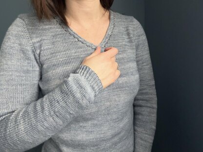 Yarn : This sweater is knit with a yarn of type fingering (Pure fingering from L’atelier teinture, col. Bleu gris).