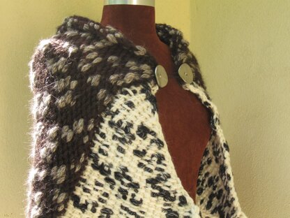 Banish the cold--and turn heads at the same time!--with this warm and fashionable wrap. Wilde thick-and-thin yarn from Plymouth is worked in two different Tunisian crochet stitches to create the unique look of this garment. The slightly rolled collar takes advantage of tunisian's natural tendency to curl.