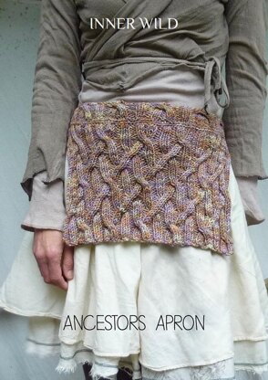 For running with the deer or simply making layering interest on a monochrome outfit, the Inner Wild Ancestors Apron is knitted in a very easy classic Aran knitting stitch as a square and sewn to a waisband that is knitted using the same stitch across more stitches.
