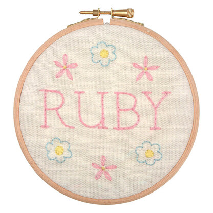 An easy and cute design with flowers motif including the alphabet letters to write your child's name, it is the perfect freestyle embroidery kit for beginners and includes all supplies needed to make it.