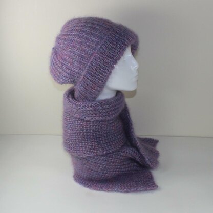 This is my Angel Fishermans Rib Slouch Hat and Scarf Set knitting pattern. This set is really quick and easy to make and looks fabulous on everyone. The knitting pattern provides full instructions for 3 sizes S (child), M (teen/ small adult) & L (adult). Its worked flat using 3 balls of Debbie Bliss Angel (or similar) knit together on 5 mm needles which makes the set very warm luxurious.