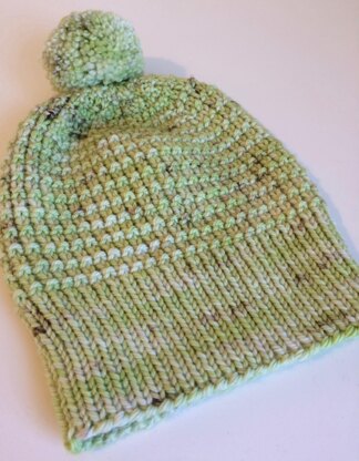 The hat is knit in an aran weight yarn but would work equally as well in a worsted weight. It is sized to fit most adult heads, with just a little bit of slouch - my favourite ! It has a simple textured pattern that works for both men and women, and it a fun quick knit.