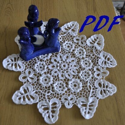 The doily diameter is 33 cm (13 inches). This round doily pattern includes 4 clear charts, pictures and written description how to crochet it. The napkin is made in modern Irish crochet lace technique: leaves, roses and shamrocks are joined with fine background net. Two size irregular net PDF patterns are available to download: small size sells net and middle size one. The video tutorial on how to work background netting is included in the pattern. Working on this pattern way you will get a lovely lace table centerpiece. The pattern is suitable for rustic home decor or farmhouse decor or as modern kitchen decor.