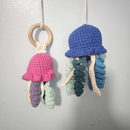 I used Lily's Sugar and Cream and Lion Brand 24/7 Cotton for mine, but any worsted weight yarn will work. (I do recommend cotton for baby toys!) These work up quickly and barely make a dent in your skein, so they're great for using up scraps!