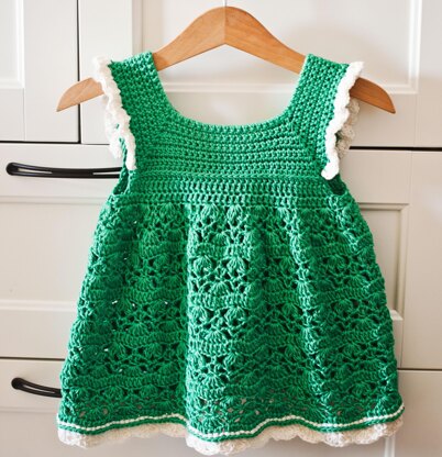 This dress is a classic, but it is easy to make and super comfortable to wear. The dress is worked top down, it’s completely seamless. There is button opening on the back. It can be made at any length. Color changes are optional. It will look great made in one color too.