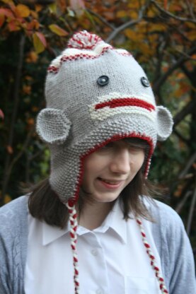 I decided to design a Sock Monkey hat at the request of one of my daughter's friends. It is worked flat on two needles, with a seam at the back, using DK yarn. The pattern includes row by row written instructions, a chart and photographs to help you. I have used moss/seed stitch for the earflaps and brim, garter stitch for the intarsia mouth, ears and crown and stocking stitch for the main body. The hat is finished off with a blanket stitch edging, ties/tassles and a pompom in all three colours used in the hat. The instructions cover four sizes from baby to teen/woman. The photograph shows the hat modelled by a 15 year old. Happy Knitting!