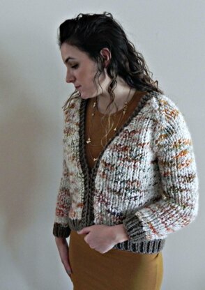 Slightly cropped and super hip, Anselm knits up in a flash. Using super bulky yarn, this funky bomber jacket will keep you warm and fabulously stylish.