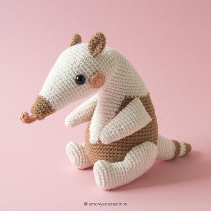 The pattern is written in U.S. terminology. The main part of this project is worked in rounds, so you might want to use a stitch marker to mark the end of each round. There is no specific gauge for this project, just try to keep it tight and even throughout each piece. Anti the Anteater is worked with La Mia Cottony but any similar cotton DK yarn will work.