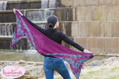 Pairing a variegated or speckled yarn with a solid for this pattern, let them work together to create a unique and cozy pattern. Starting from the outside, you create 2 shallow triangles which then are connected with a diamond shape & finished off with some short-rows, creating a beautiful, unique shape which stays well on your shoulders, drapes around you and keeps you warm