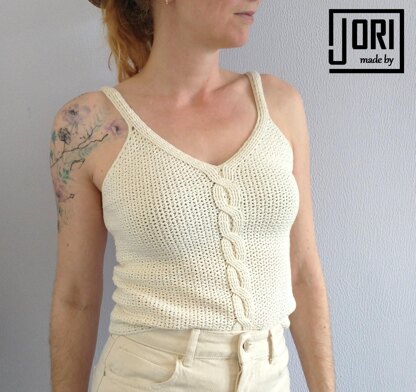 Antonia is a top with beautiful structures. Using post stitches you will create cable structures on both front and back. It is made top down with an invisible seam technique and designed to have a close fit on the bust and a loose fit in the waist. I give options to customize length, waist shaping, strap length and ribbing. The pattern has a written description with pictures and links to video tutorials to help make things clear.