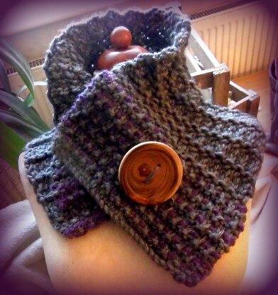 Quick to knit, the two stitch patterns look more complex than they are. Make it in two colours, or all in one, and have fun with the decorative button! Large toggle? Huge wooden button? Totally up to you.