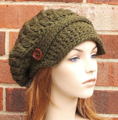 Aoife is a warm, luxurious newsboy hat featuring a squishy cluster stitch pattern, a trendy brim, and a gorgeous knit-look button band. This hat works up super quickly in bulky yarn! This pattern contains helpful, clear photos and easy to follow, detailed instructions.