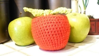 This pattern makes one apple cozy. The leaves are worked at the top of the apple cozy and are not sewed on.
