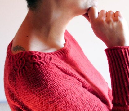 This is a lovely garment seamlessly worked in the round from the top down using the contiguous method developed by Susie Myers. Knit it in a bold colour for a cool style or in a neutral colour for a basic every day sweater! The little cable pattern for shoulders is available in both charted and written directions.