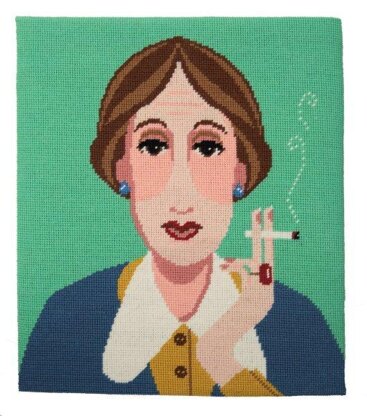 Virginia Woolf Gobelin-Set von Appletons. Ein großartiges Gobelin-Set zum Sticken eines Porträts von Virginia Woolf. Diese Schriftstellerin der literarischen Moderne hatte einen großen Einfluss auf die feministische Literatur des 20. Jahrhunderts. Das Set enthält: