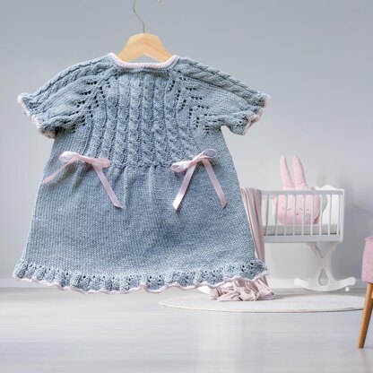 PATTERN DETAILS: - Instructions written in English, both for knitting in the round or with straight needles. - Size: 0-3 months. - Skill level: Intermediate. - Skeins: 75 g of mercerized cotton #5 in pearl gray, and 25 g in light pink. - Knitting needles: 2.5 mm circular or straight (approx.. US 1.5). - Crochet: 2 mm. - Decorations: 1 m long satin ribbon in light pink, 0.5 cm wide. 3 small pink buttons.