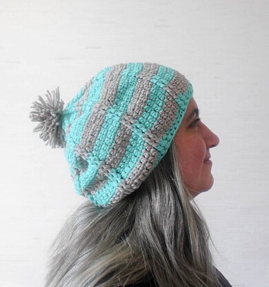 This cozy slouchy hat uses a simple, repeating pattern featuring front post double crochet stitches for textured ridges. It works up quickly in bulky yarn.