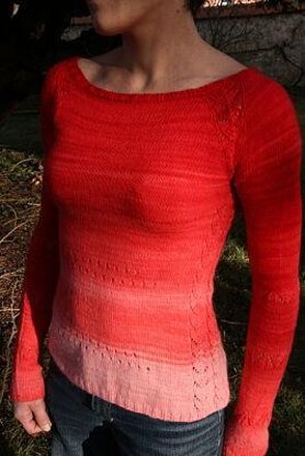 The sweater is knitted from top down seamlessly. A nice lace for the raglan and each side of sweater.