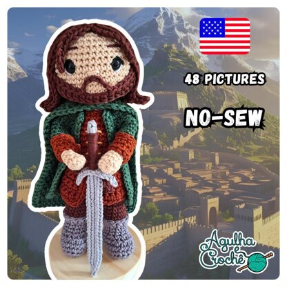 - 100% Cotton yarn Crochet hook 3.0 and 4.0 mm Safety eyes (9 mm) Scissors Tapestry needle Fiber-fil stuffing Fabric glue Wire (for sword)