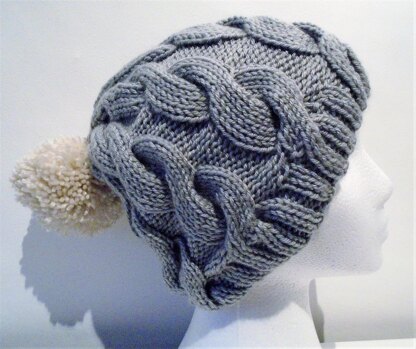 A very easy knitting pattern for an Aran Cable Pom Pom, Beanie Hat.